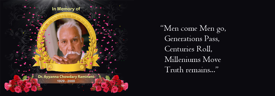 "DR. RAMINENI FOUNDATION was founded in 1995 by the Late Dr. Ramineni Ayyanna Chowdary in Cincinnati of Ohio State, USA with a vision that embodies the onus of protecting and promoting the monumental heritage of Indian Culture and ideals of Hinduism. In addition, the primary mission of the foundation is to felicitate the valiant, relentless and altruistic efforts of all those high priests drawn from a cross spectrum of fields in arts, science and humanities.